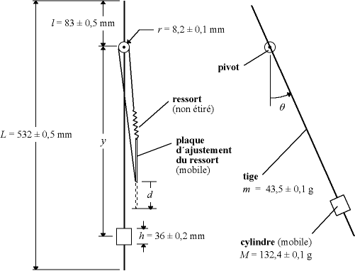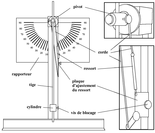(la tige, le cylindre, le pivot, le ressort et la plaque